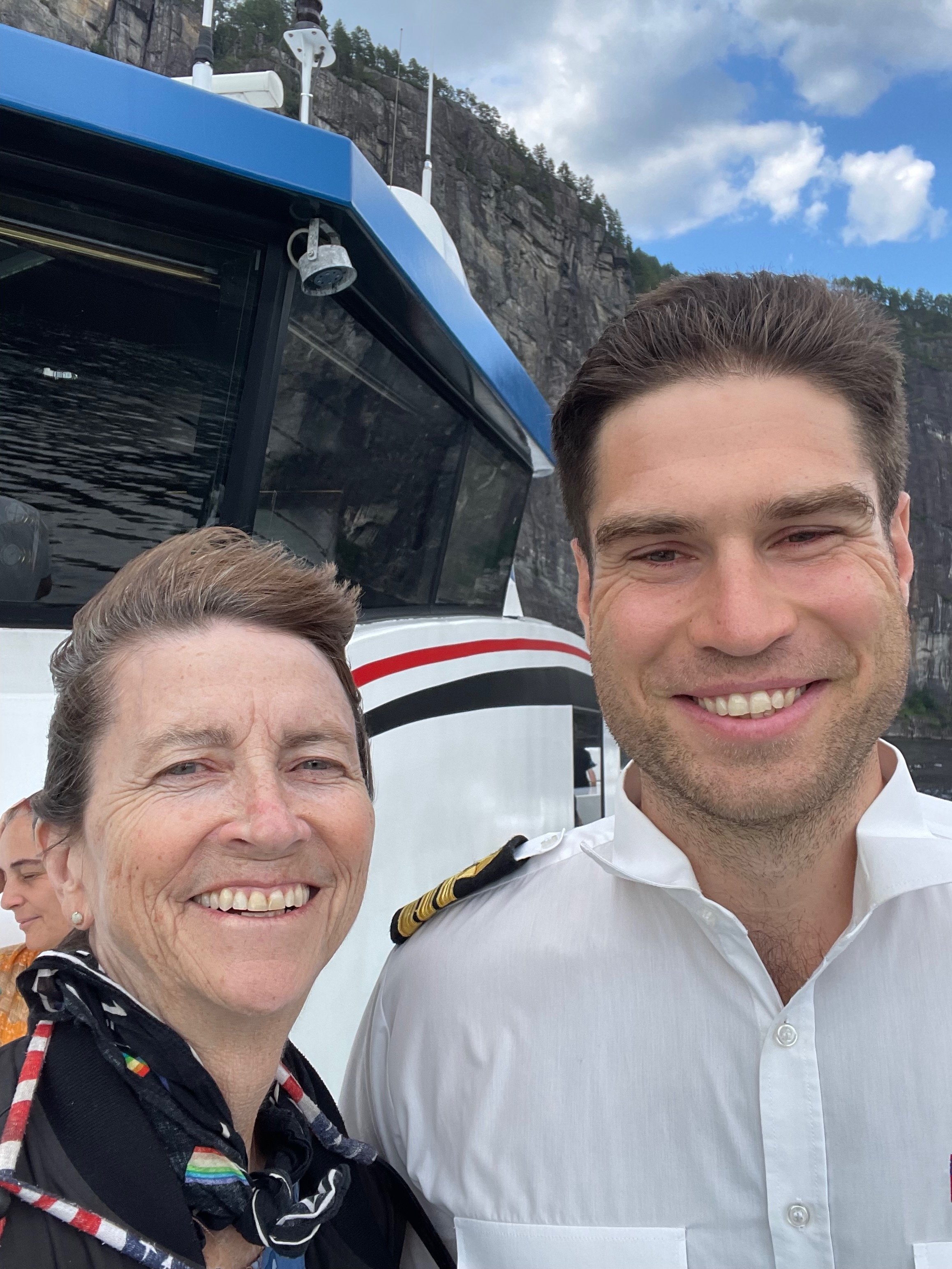 Saw plenty of fjords on this cruise. Windy and warm. Great day on the ship. Two dogs on board a vessel made it special for passengers, too.