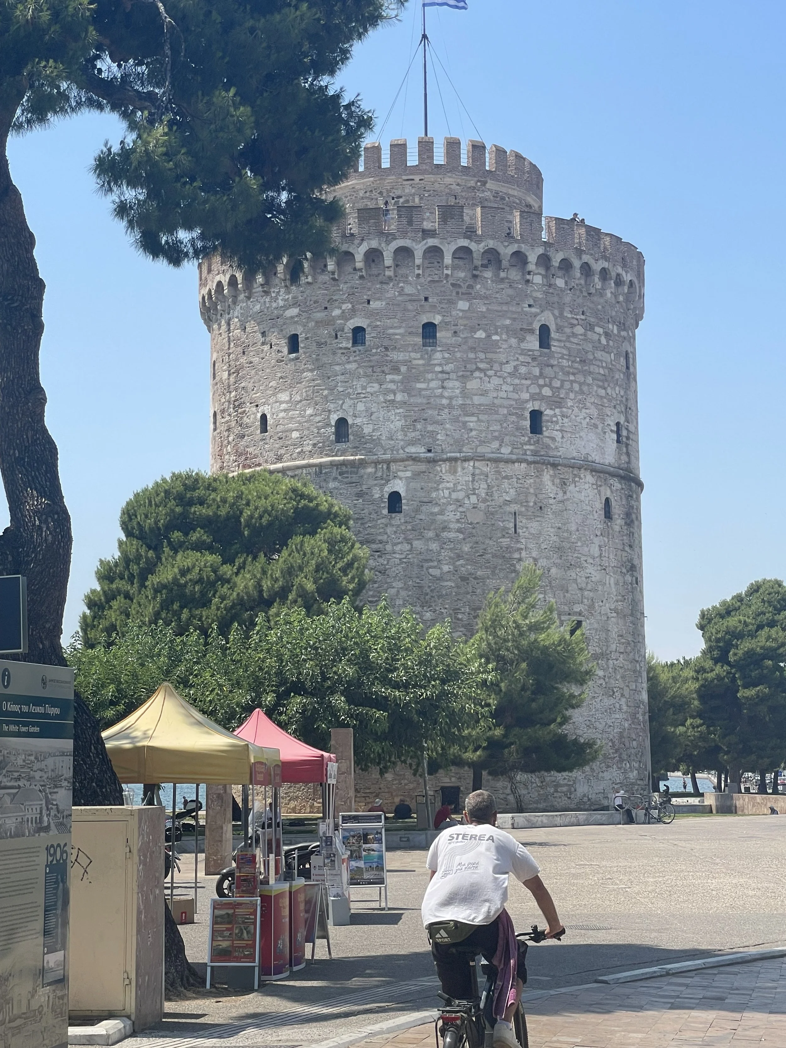 The White Tower is a local landmark. And eight stories tall — stands by the sea. From higher viewpoints, you see it in context: circular, strong, solitary. It’s a good point of reference if you get lost.