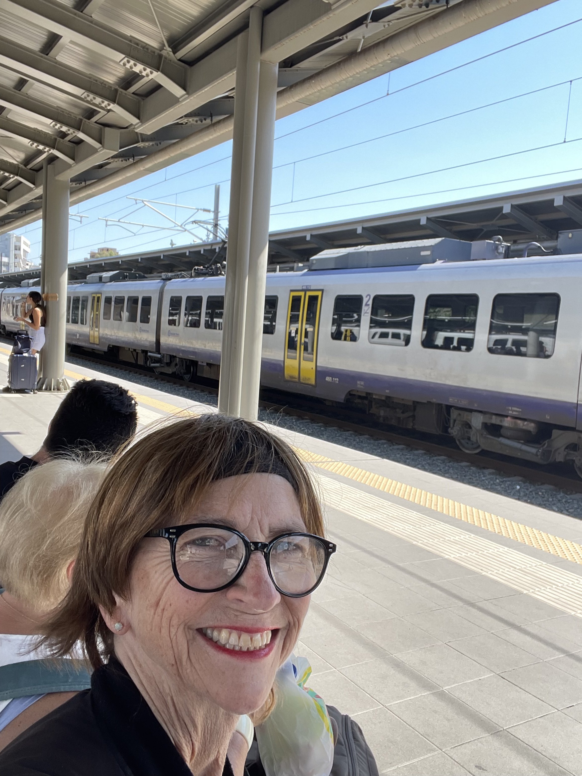 From the train window, what did I experience? Out the window: farms, tractors, cows. Olives. Grapes. Hay fields. Solar panels on rural homes. Mountains hugging Athens in the distance.
